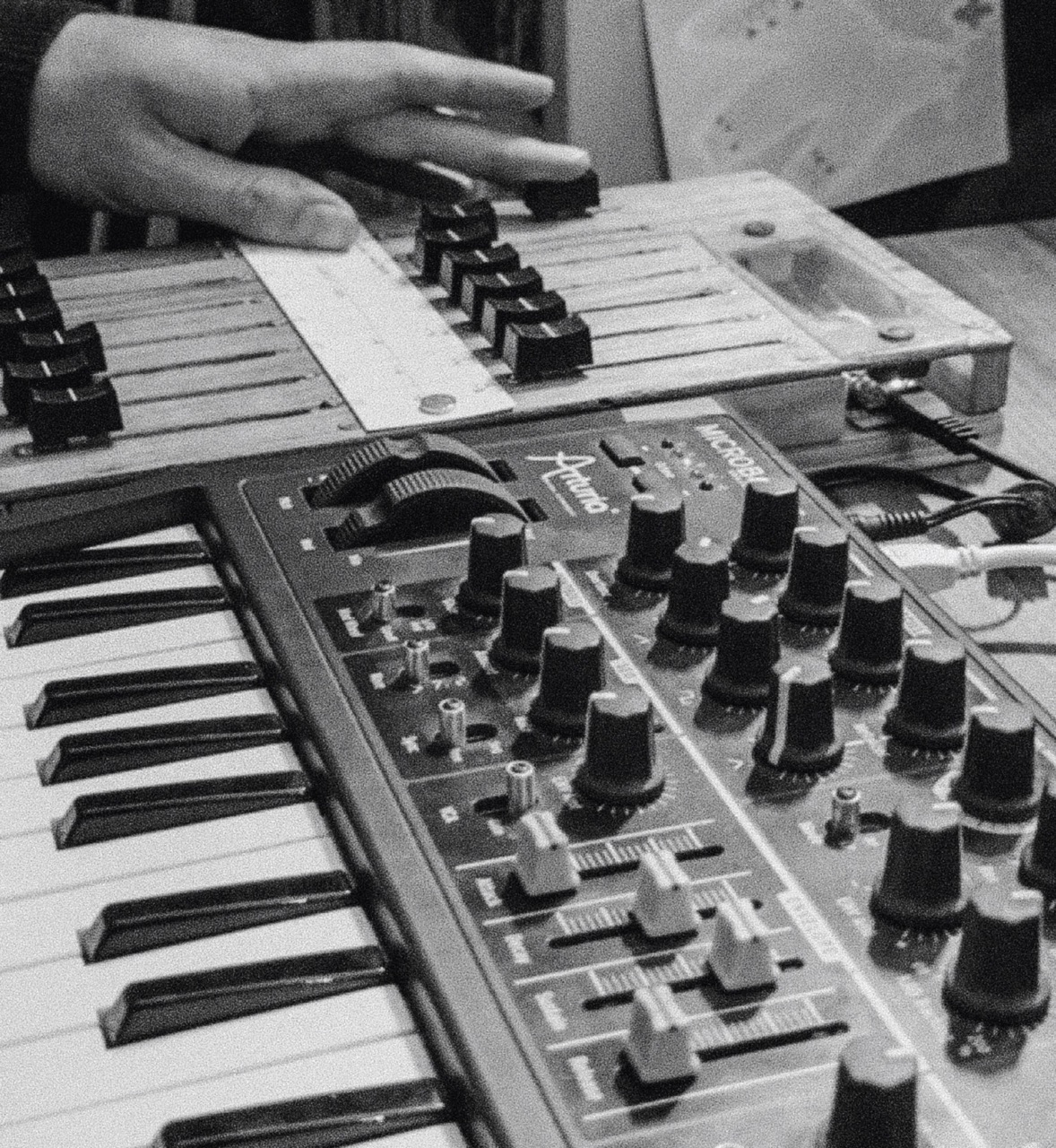 An evolution of the concept using a predefined pattern instead of a hand-drawn one. The clock speed of the arpeggiator can be controlled in real time via an external slider. One instrument serves as a continuous drone layer, while the others play arpeggiated patterns.